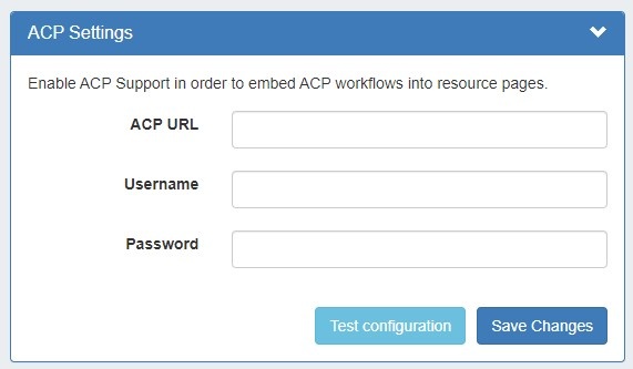When done, click "Test configuration" to verify the connection and then "Save Changes". Afterwards, you may proceed to configure the ACP Workflows Gadget to specify Workflows to execute in ProVision.