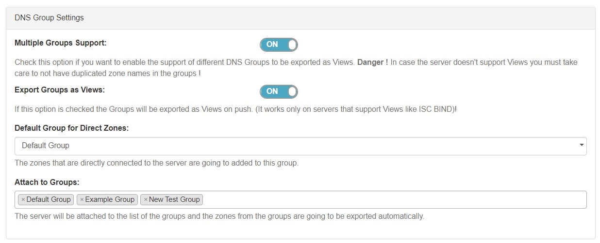 - Set by DNS Group from the DNS Groups page, or