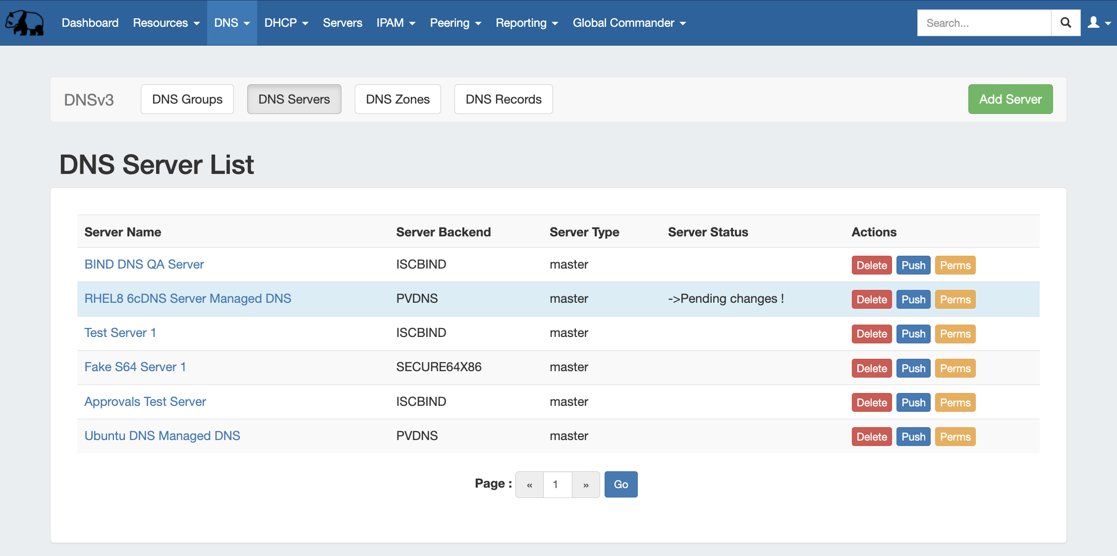 - Managing DNS Servers: The DNS Servers page