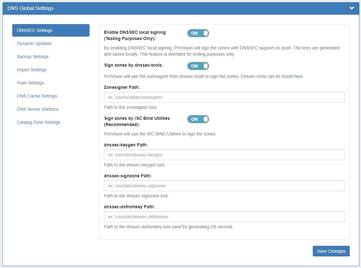 - Dynamic Update via nsupdate: Toggle to "On" if you wish to use Dynamic Updates via nsupdate, instead of ProVision's internal implementation.