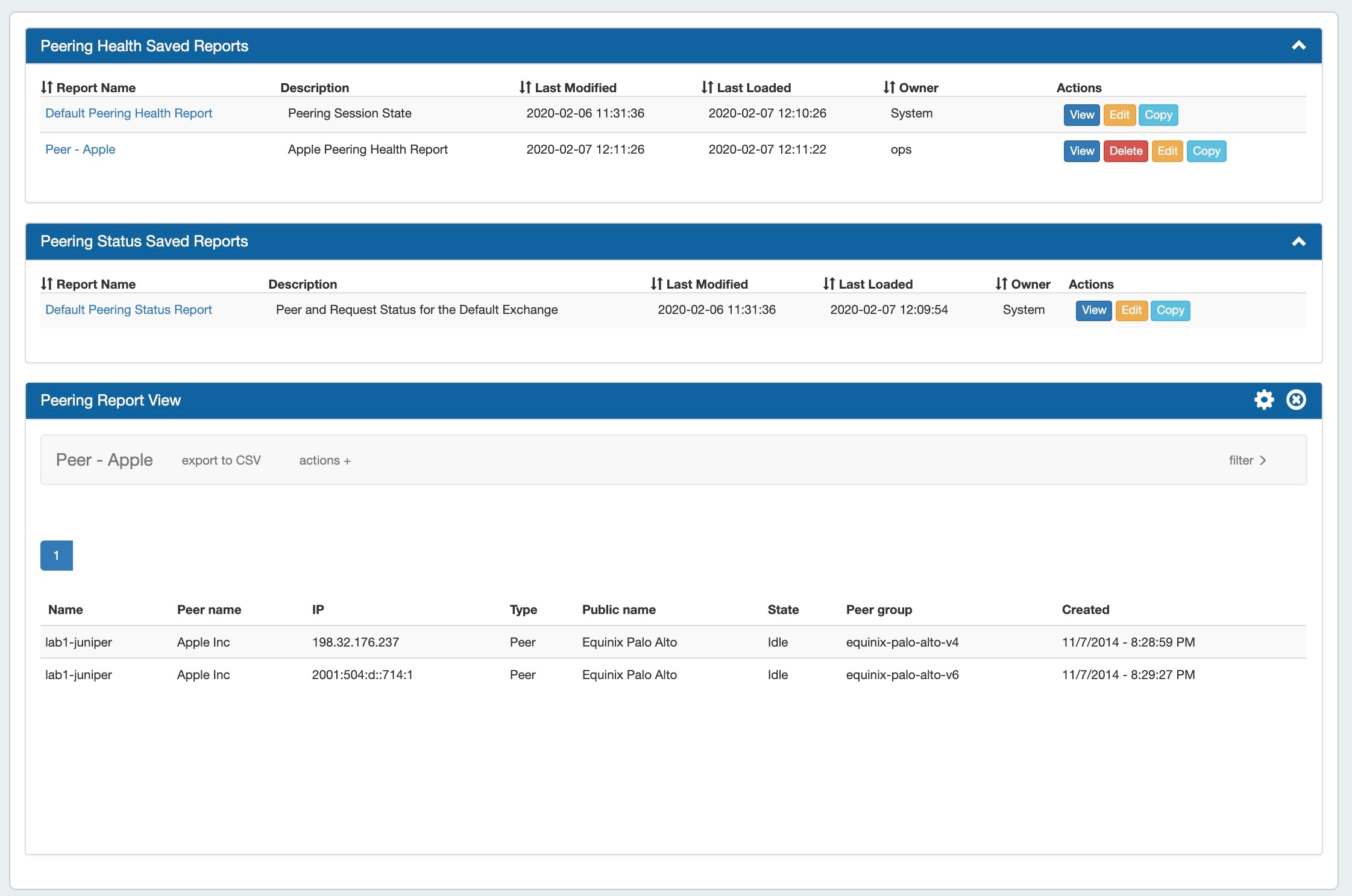 Peering Reports