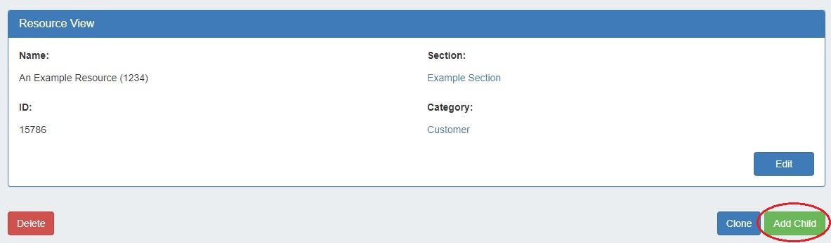 To add a child entry, at the bottom of the resource entry page, click "Add Child".