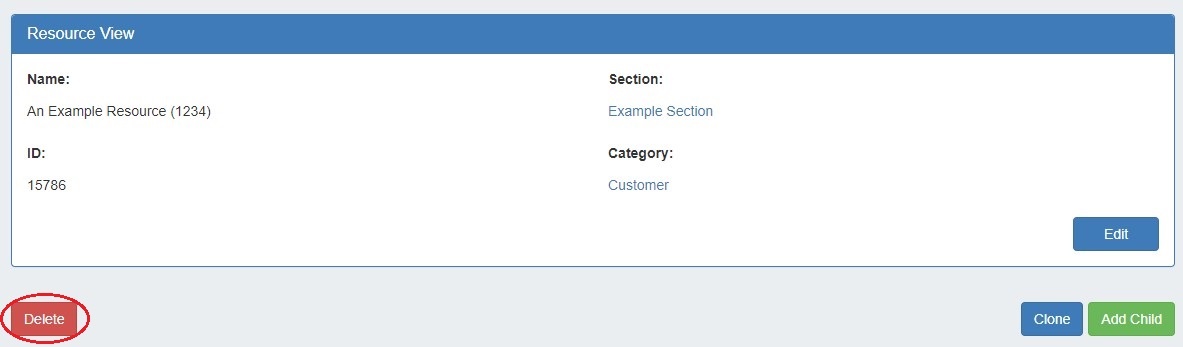 - 3) Clone Resource Button: Click to clone an existing resource