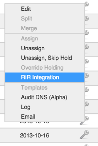 Select "RIR Integration" from the Action Menu in IPAM Manage.