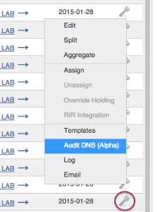 1) Access the UI version of the Tool by going to the desired block in IPAM Manage, click on the Action Menu (wrench), then select "DNS Audit (Alpha):