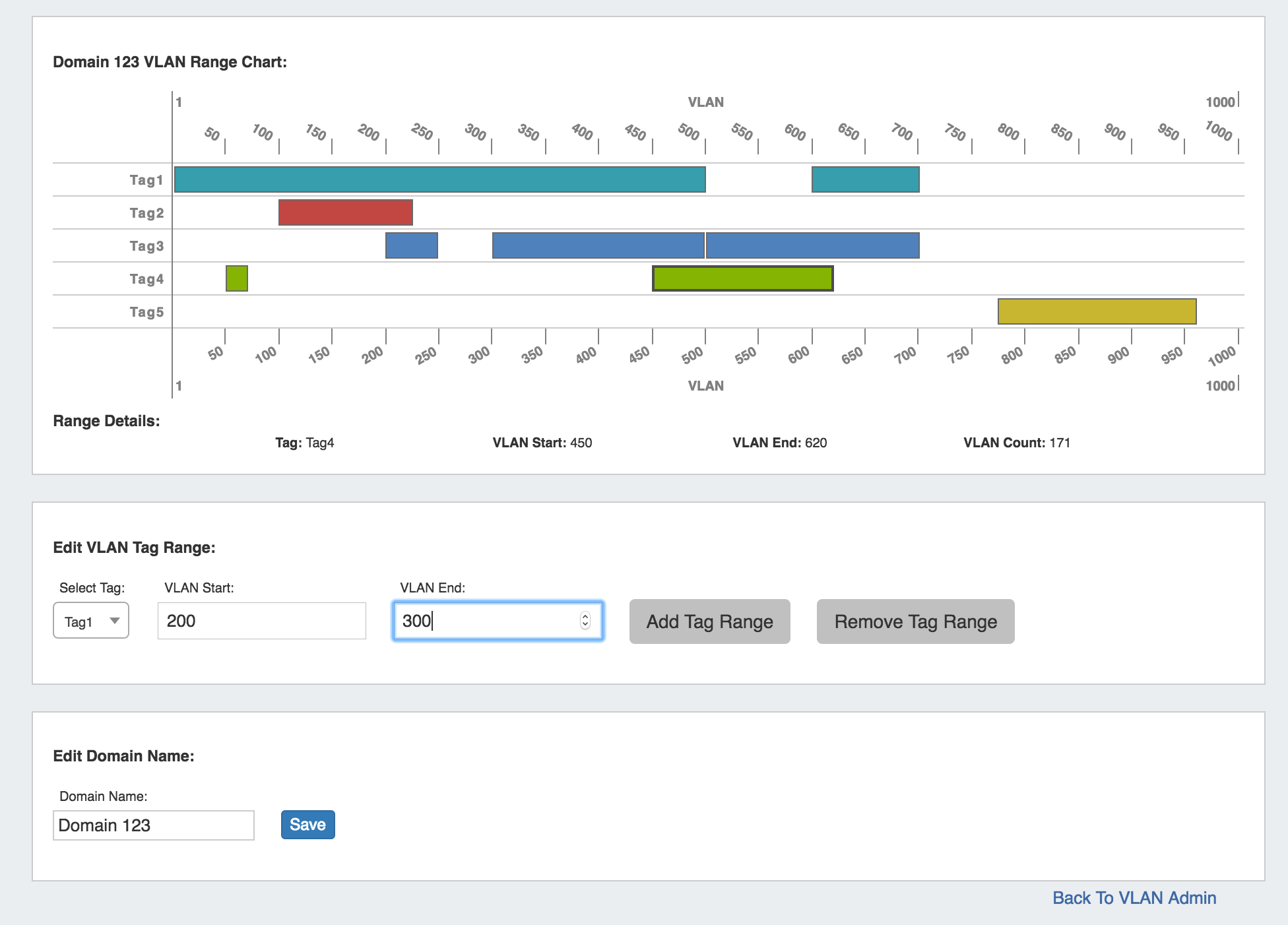 - Editing Tags (Tagging and Untagging Ranges) now occurs under the "Edit VLAN Tag Range" section of the page.