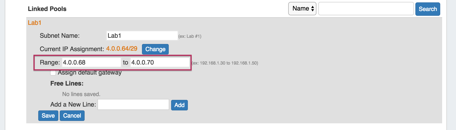For example: if a DHCP Pool is created using 10.0.0.64/29 with an IPAM Rule of "Reserve First Three", the resulting pool range would be 10.0.0.68 through 10.0.0.70, as the first four as well as the final address would be reserved.