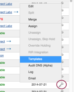 Templates for a block are available under the Action Menu (wrench icon) for that block. There are two templates available: Cleanup, which auto-aggregates the block, and Auto-split.