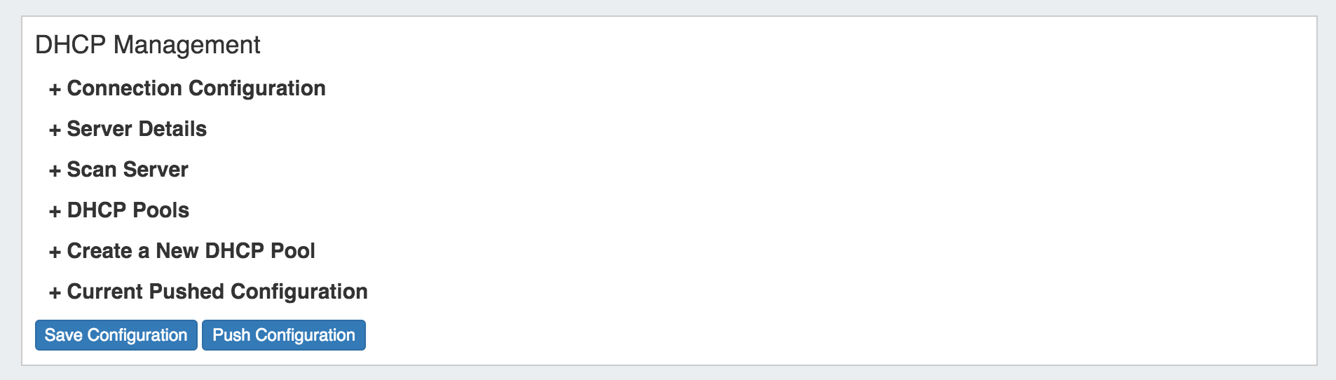 These configurations are then sent to the associated DHCP server Management Gadget as "Unpushed Configurations", where they may be held until a manual or schedule push occurs.