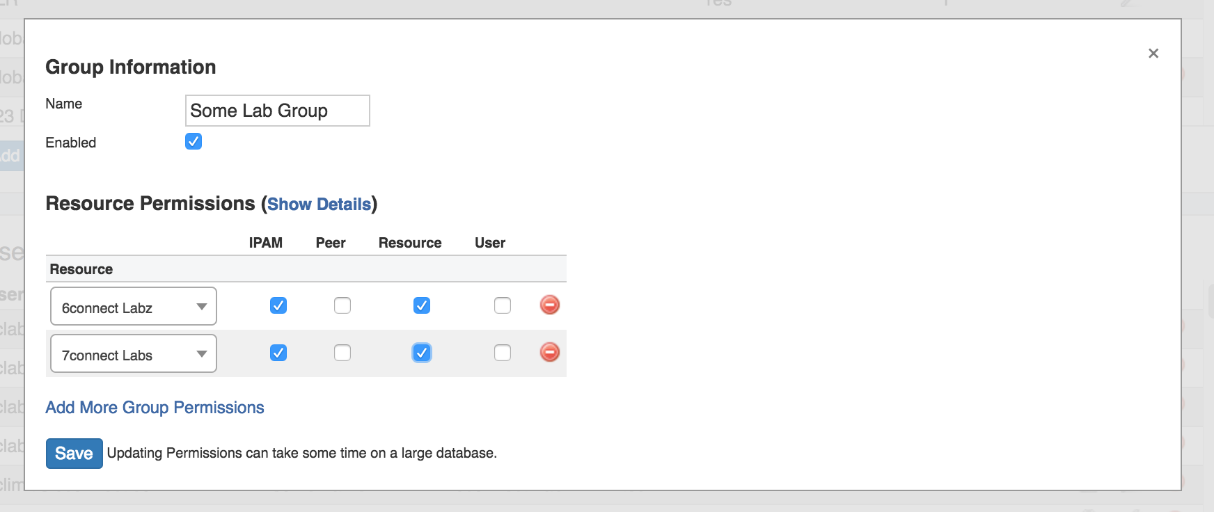 Thus, moving IP blocks from "6connect Labz" to "7connect Labs" requires the user to have IPAM and Resource permissions on both Lab resources.