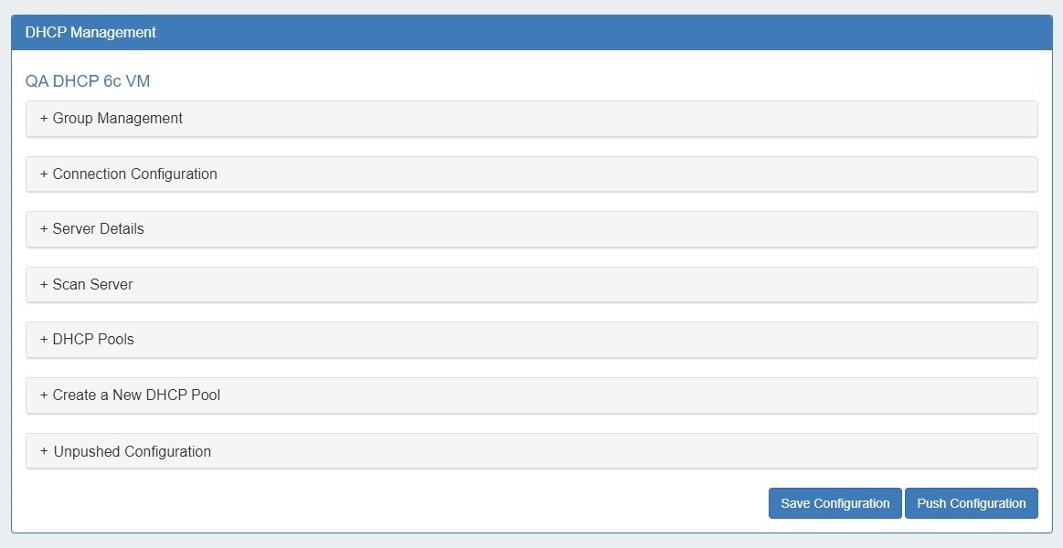 These configurations are then sent to the associated DHCP server Management Gadget as "Unpushed Configurations", where they may be held until a manual or schedule push occurs.