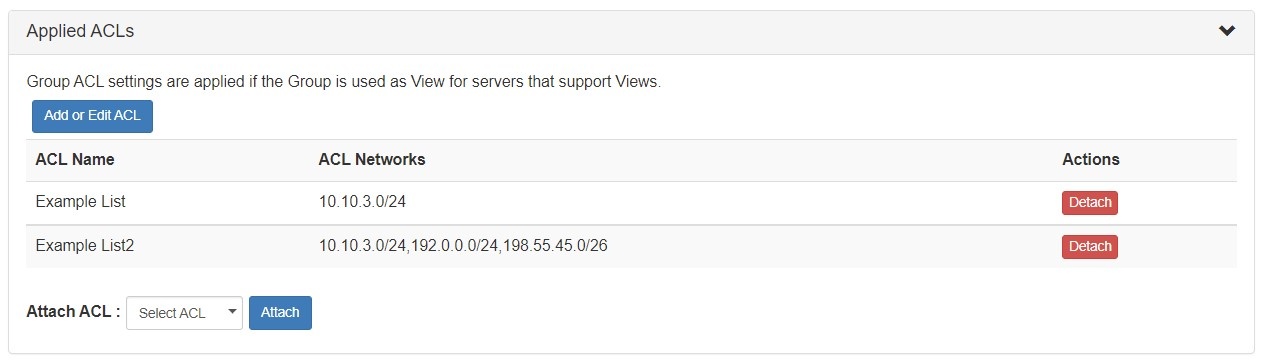 ACLs are managed on a per-DNS Group level, and may be added, edited, or removed by any user with appropriate resource permissions on the DNS Group.