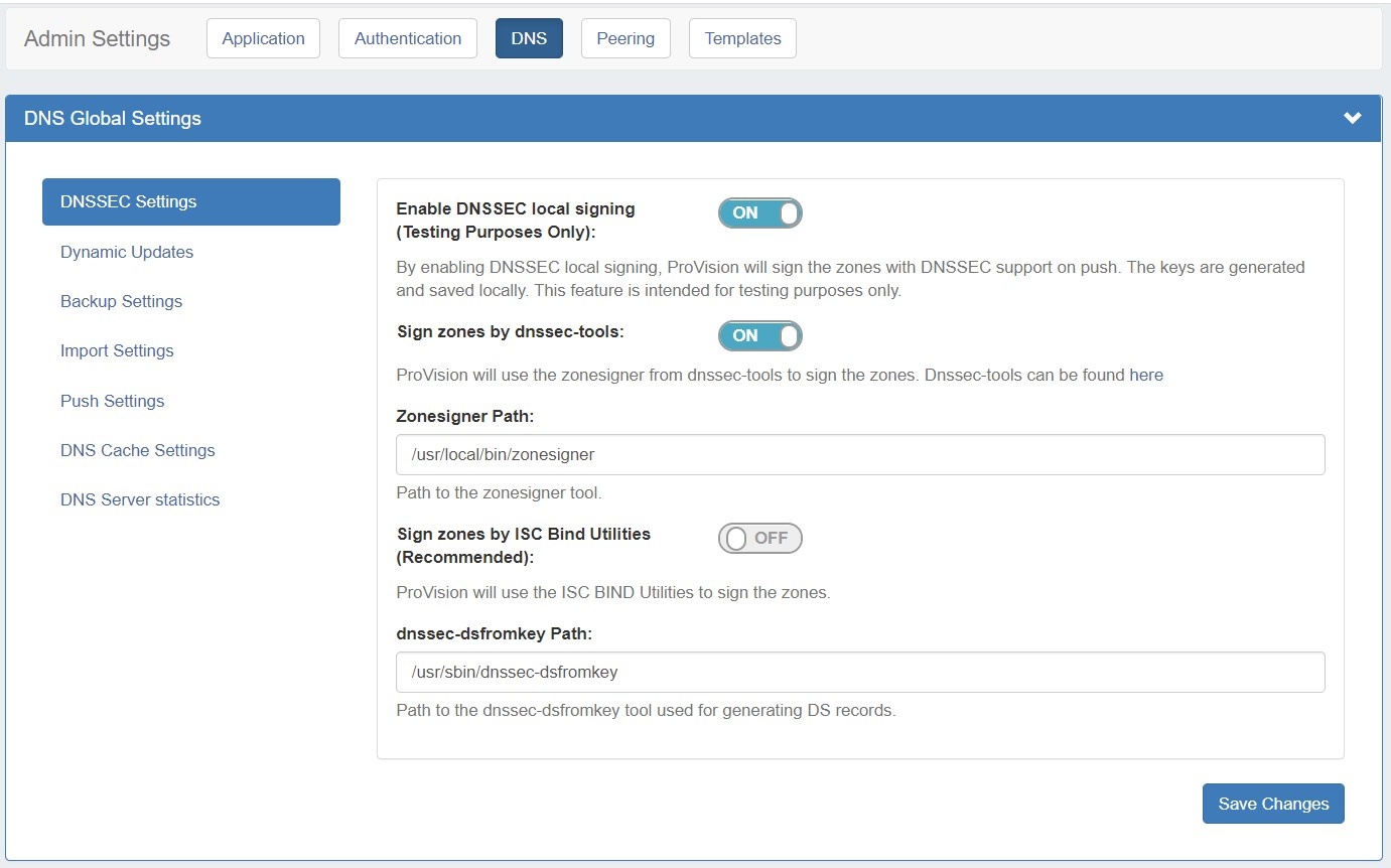 Dynamic Update via nsupdate: Toggle to "On" if you wish to use Dynamic Updates via nsupdate, instead of ProVision's internal implementation.