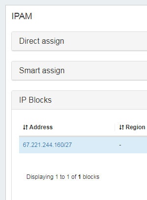 We've got everything together so let's do some SWIP'ing. Our example domain is 67.221.244.160/27. Here is what it looks like in ARIN Online: