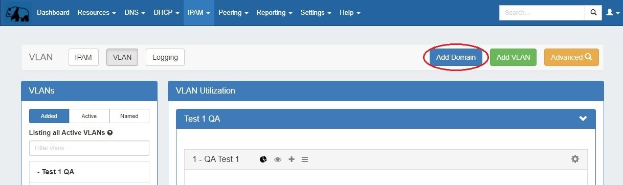 Add a new domain by clicking the Add Domain button at the top of the VLAN Home page.