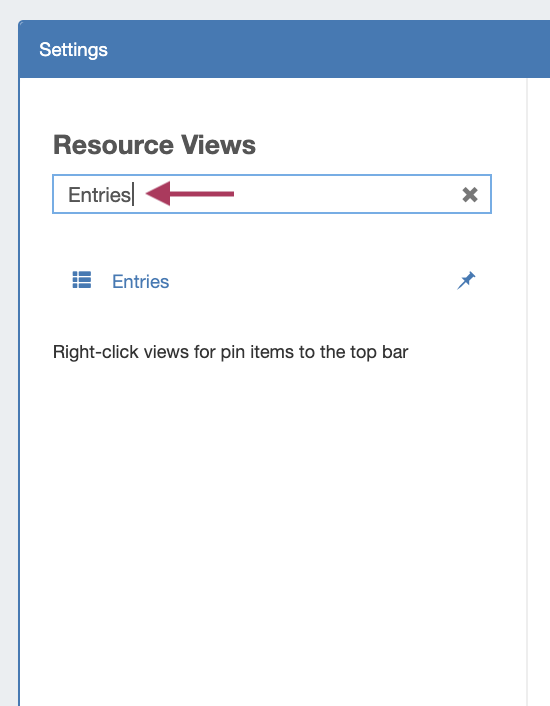To Pin / Unpin a Resource View to the top header bar (where it will display as a button), right-click on the view, then select: