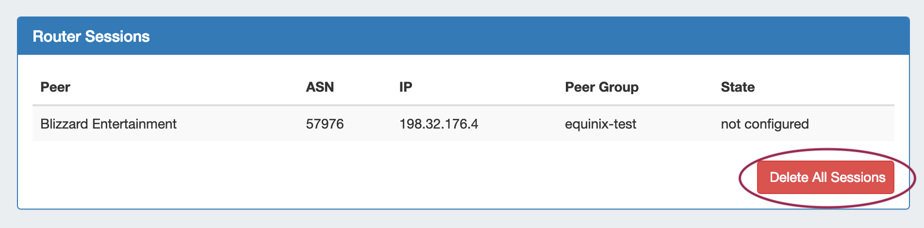 Delete all sessions in ProVision for the router by clicking "Delete All Sessions" under Router Sessions.
