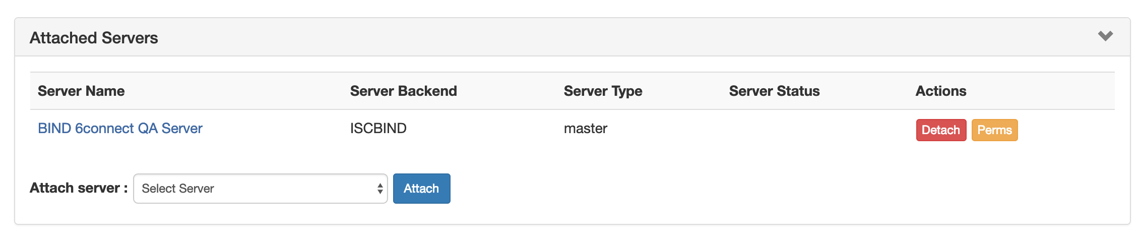 To attach a server, expand the "Attached Server" module, and click on the Attach Server list.