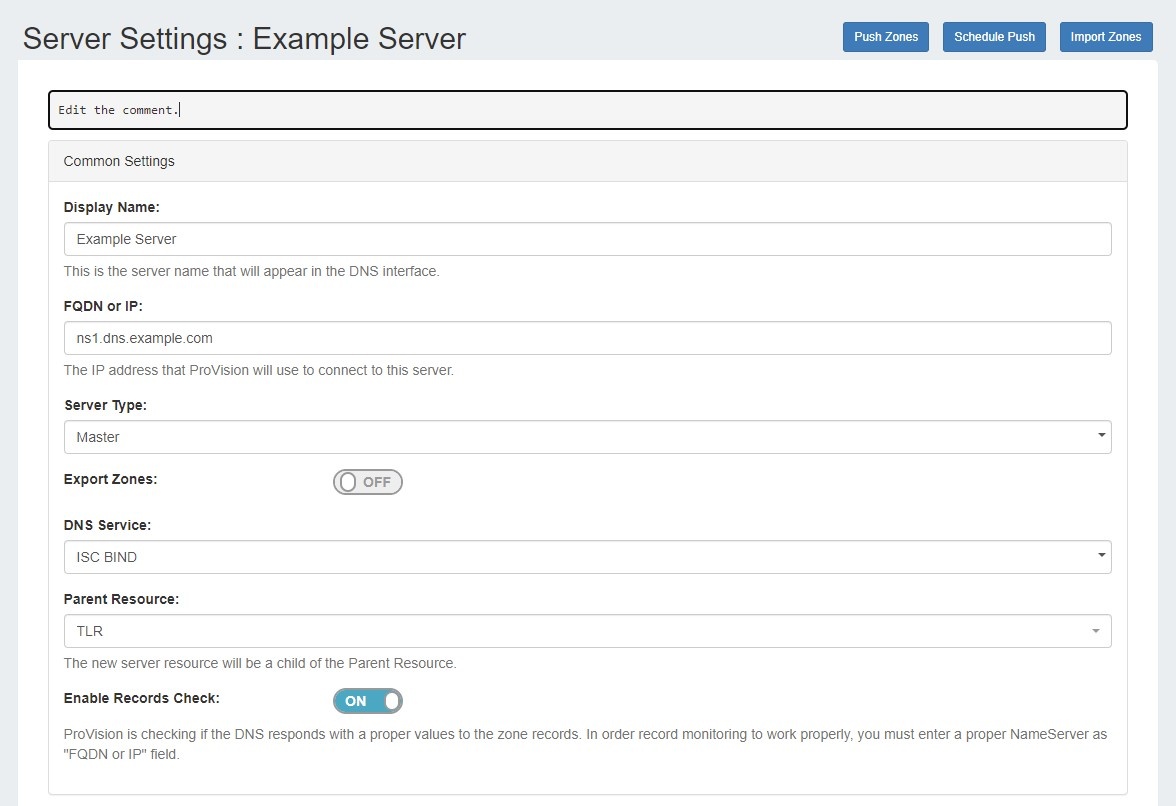 Pushing may also be done while in the Server Settings page. While in the Server Settings page, click the "Push Zones" button at the top right of the page.
