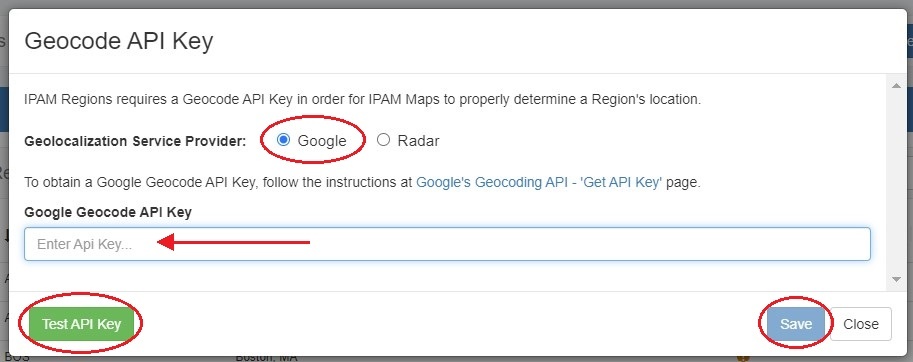 Applying a Geocoding API Key: