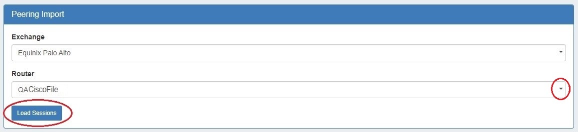 Before attempting a session import, ensure that the applicable exchange and router have been added into ProVision. See (8.2.0-8.2.1) Peering Exchanges and (8.2.0-8.2.1) Peering Routers for details.