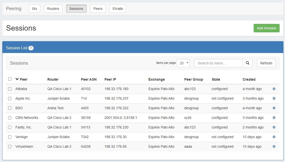 Peering Sessions