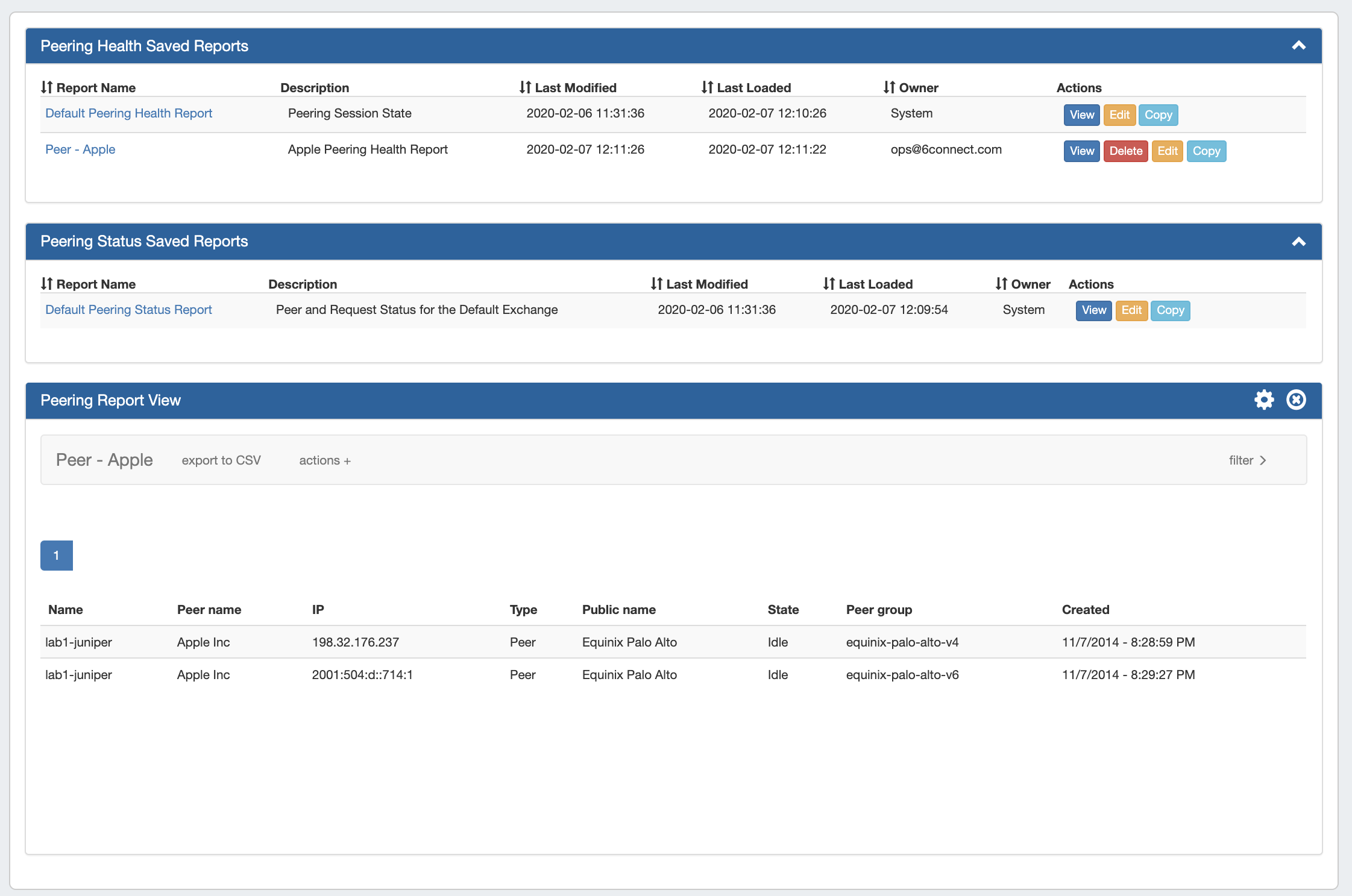 Peering Reports