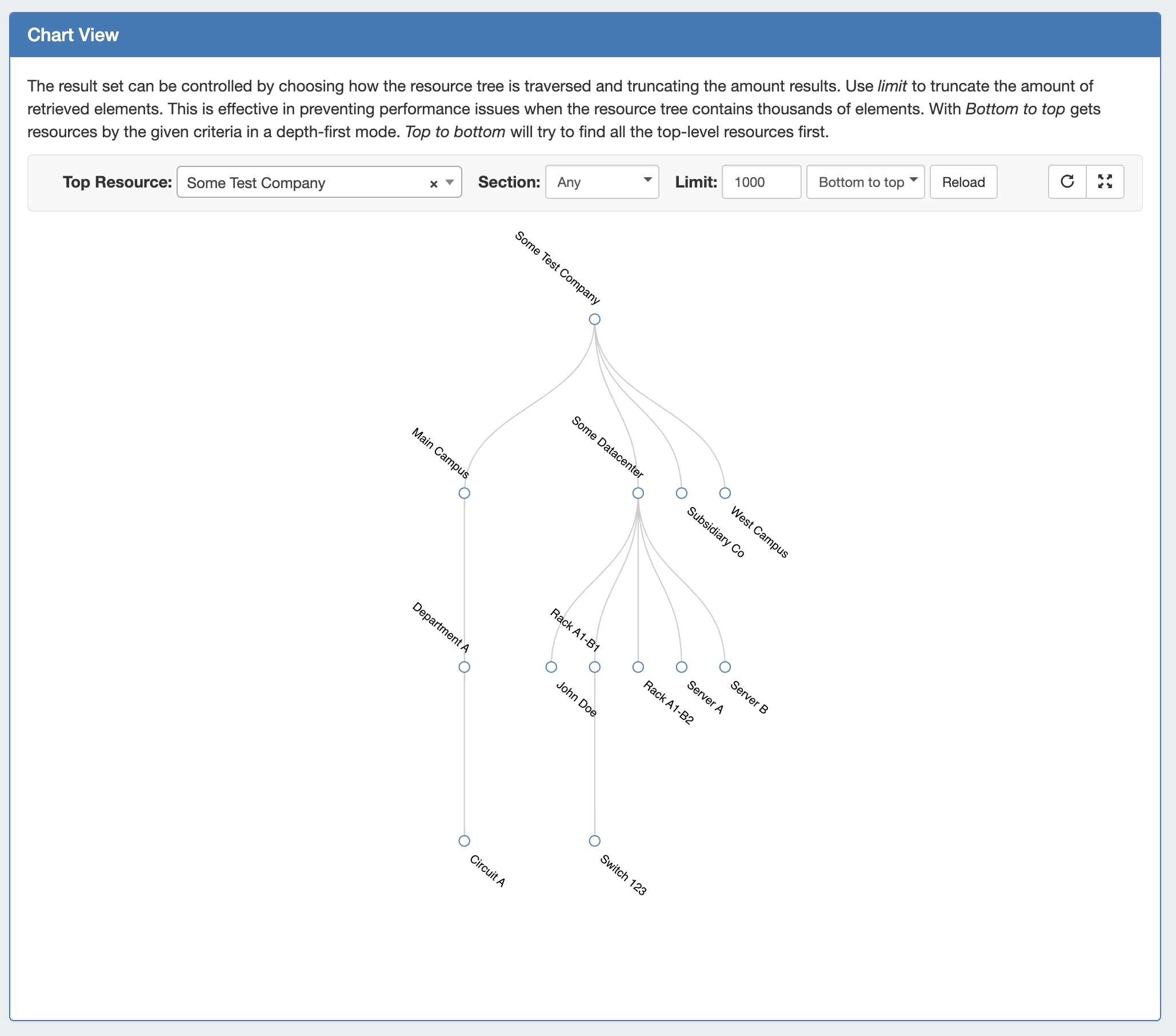 In ProVision, "Child" Resources can be created underneath a "Parent" resource. This functionality allows for hierarchies to be created to match the desired organizational structure. An example of this would be to create racks and servers as children under a datacenter entry. Chart View, available from the Resources tab, lets you see this structure graphically.