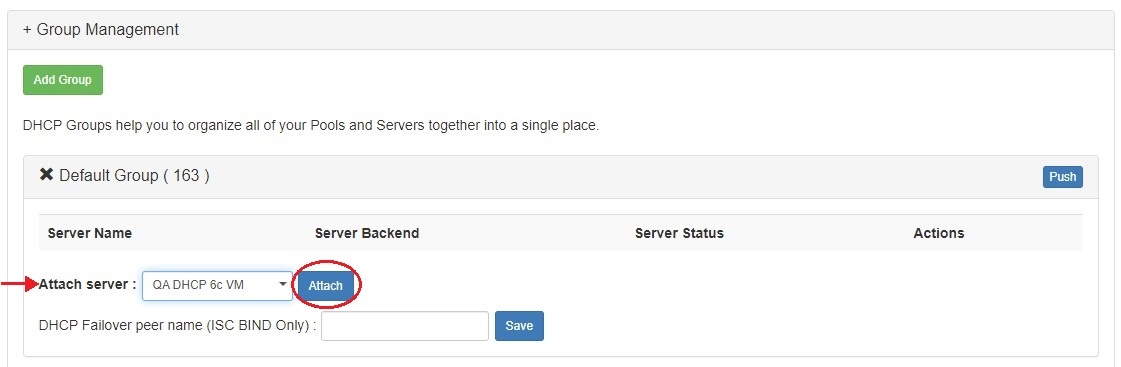 DHCP groups help you to organize all of your Pools and Servers together into a single place, and push pools linked to a DHCP Group to all of the servers attached to that group. It also allows for the designation of a DHCP Failover Peer for ISC BIND servers.