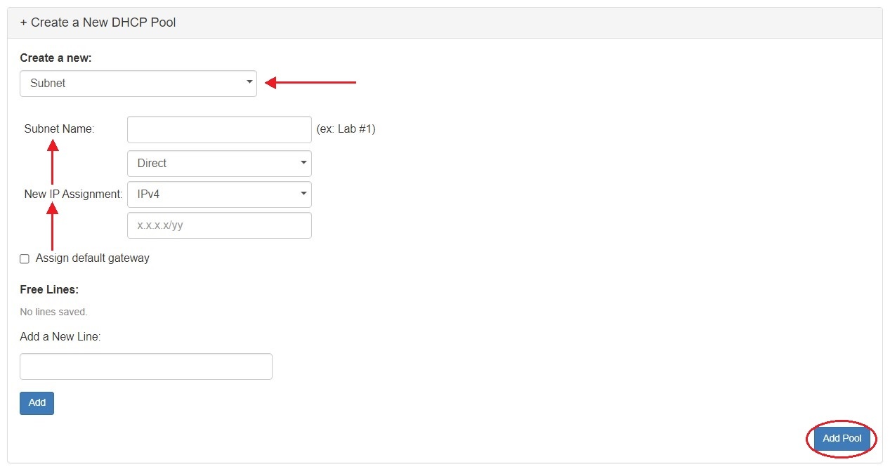 Create a New DHCP Pool - Subnets