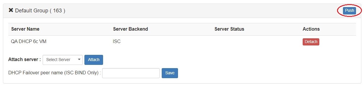 Lastly, click the "Push" button for the DHCP group to push the linked pool(s) for the group to the linked DHCP module, and then push all DHCP servers linked to the group.