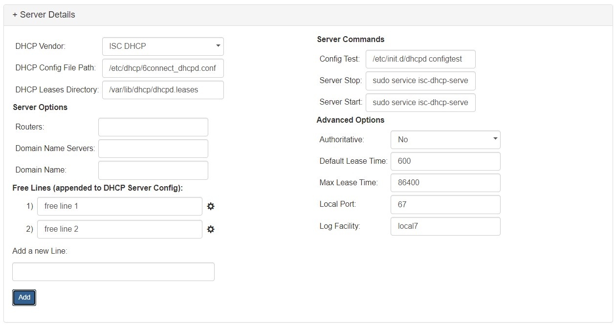 In this area, the admin can specify what DHCP pools are linked to the DHCP server or DHCP groups.This includes any host reservations, as well as DHCP pools as defined in the next section.