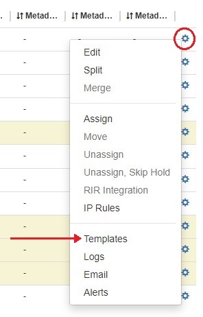 Templates for a block are available under the Action Menu (gear icon or right-click) for that block. Templates are only usable from IPAM Manage.