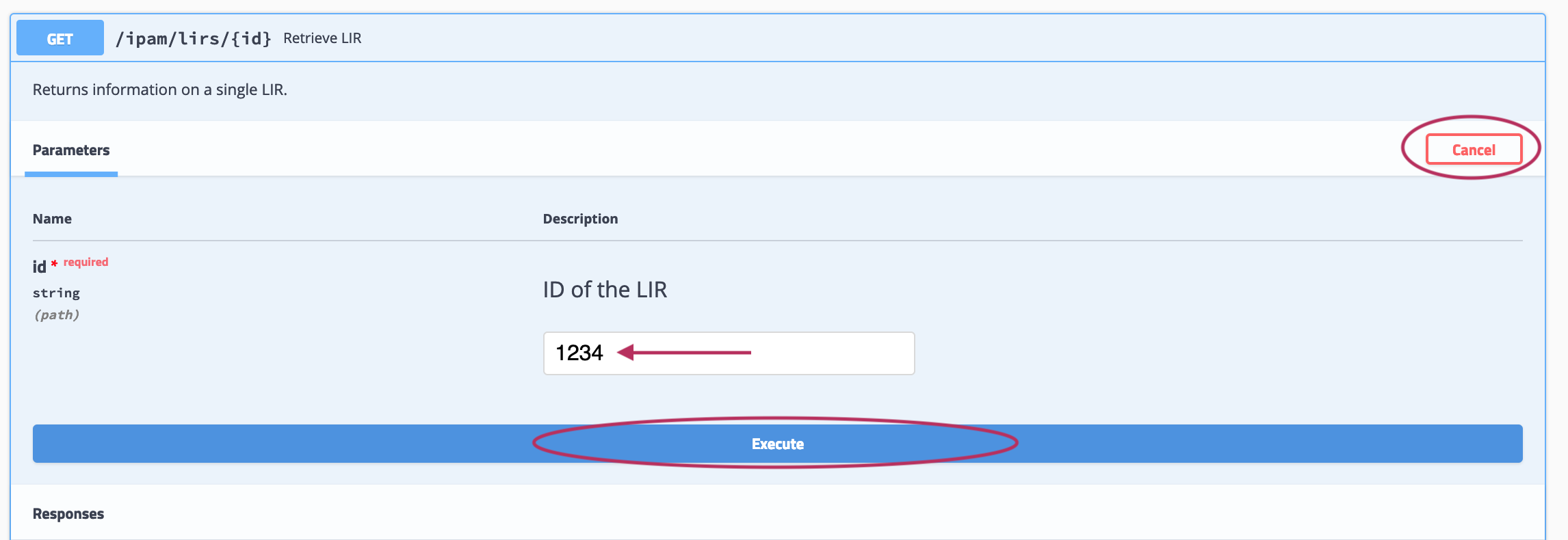 2.  Expand the call to view its details, then click the "Try it out" button.