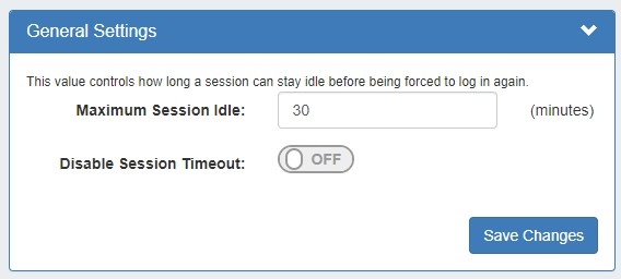 Maximum Session Idle: This setting (minutes) controls how long a session can stay idle before being forced to log in again.
