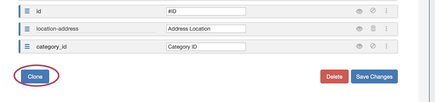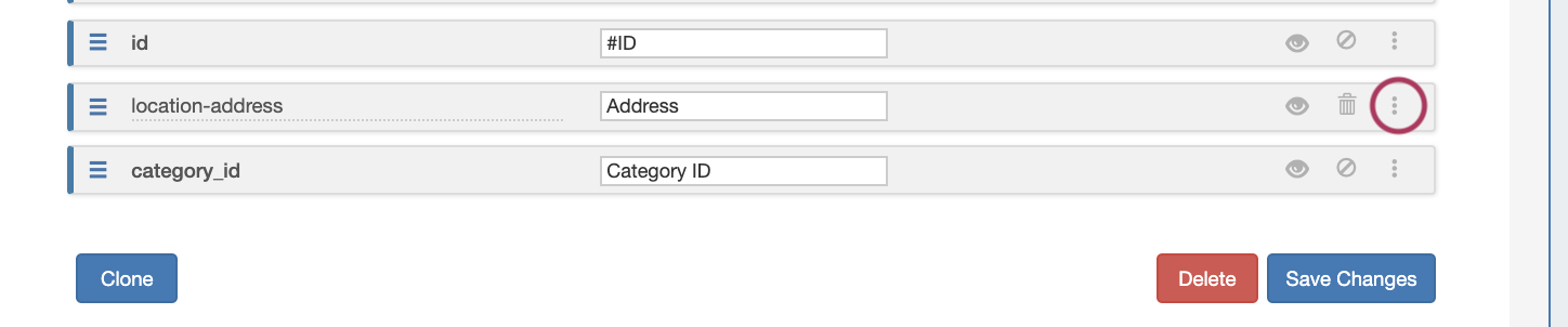 To toggle column visibility on or off, click the "eye" icon on right side of the field row.