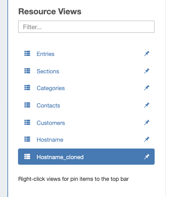 To Pin / Unpin a Resource View to the top header bar (where it will display as a button), right-click on the view, then select: