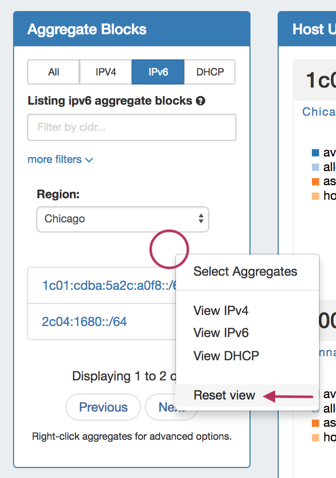 • Single click on the CIDR to zoom to the aggregate details in the Utilization list
