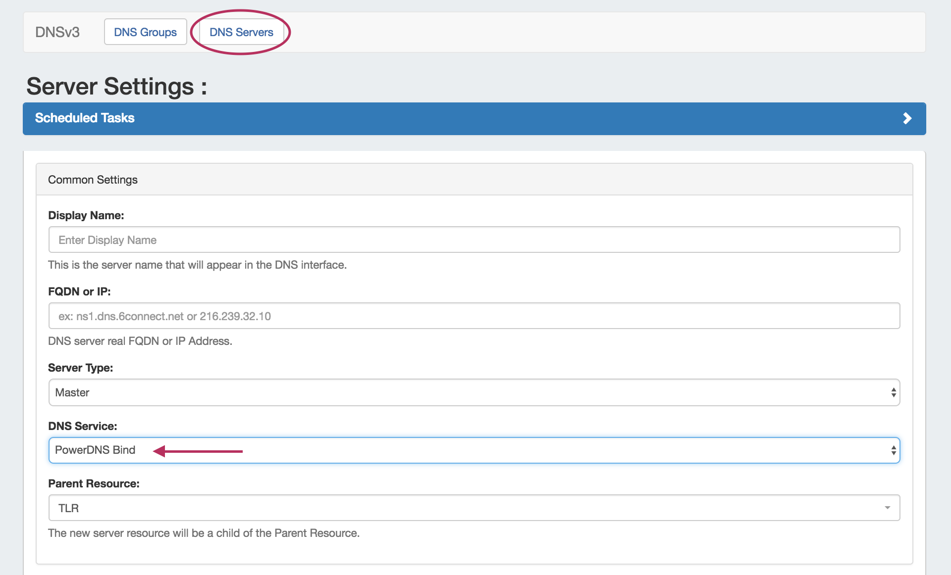 To import PowerDNS zones, first ensure the PowerDNS server has been set up under the DNS Tab, DNS Servers section (see: (8.3.0) Working with DNS Servers and configuring a PowerDNS server).