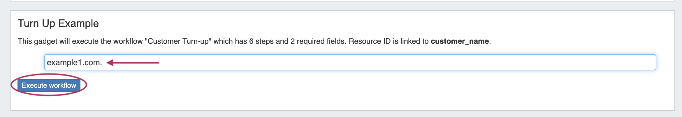 Input the field data necessary for the Workflow - here, it's adding a hostname - then click "Execute Workflow" to process the chain of workflow calls.