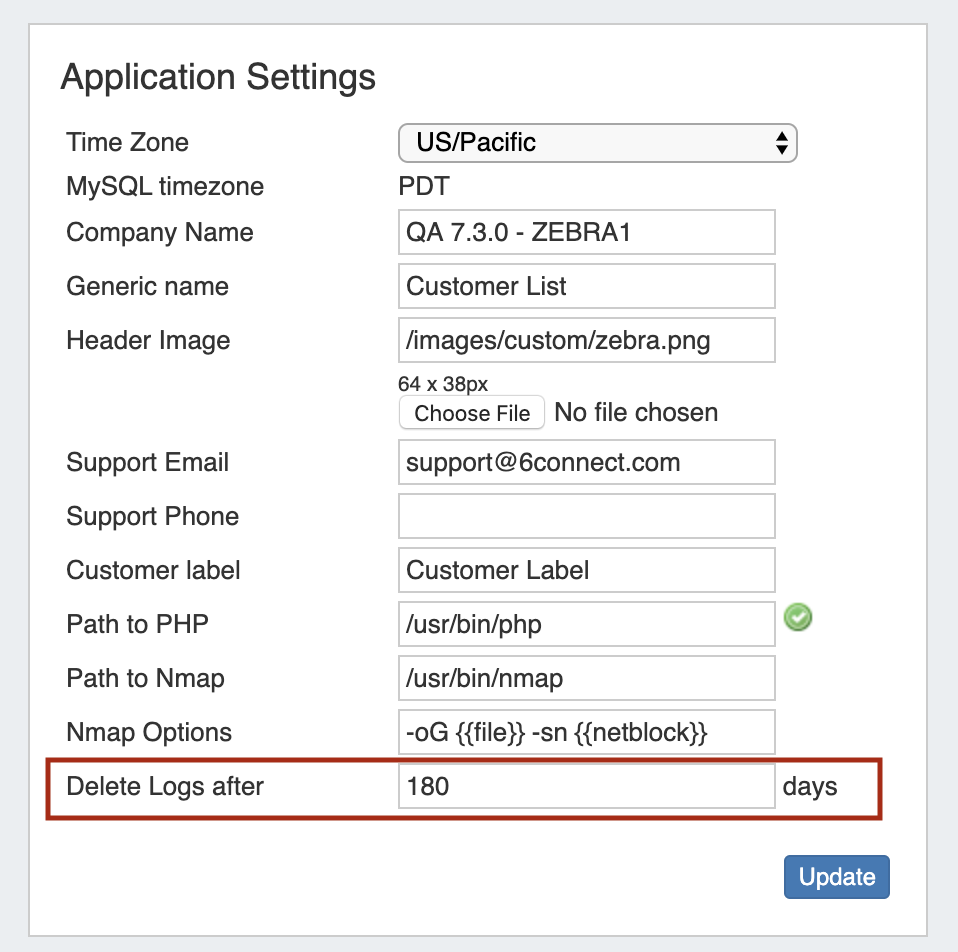 TheAdmin Preferencespage now contains an option under Application Settingsto "Delete Logs after X days". By default, this field is set to 180 days.