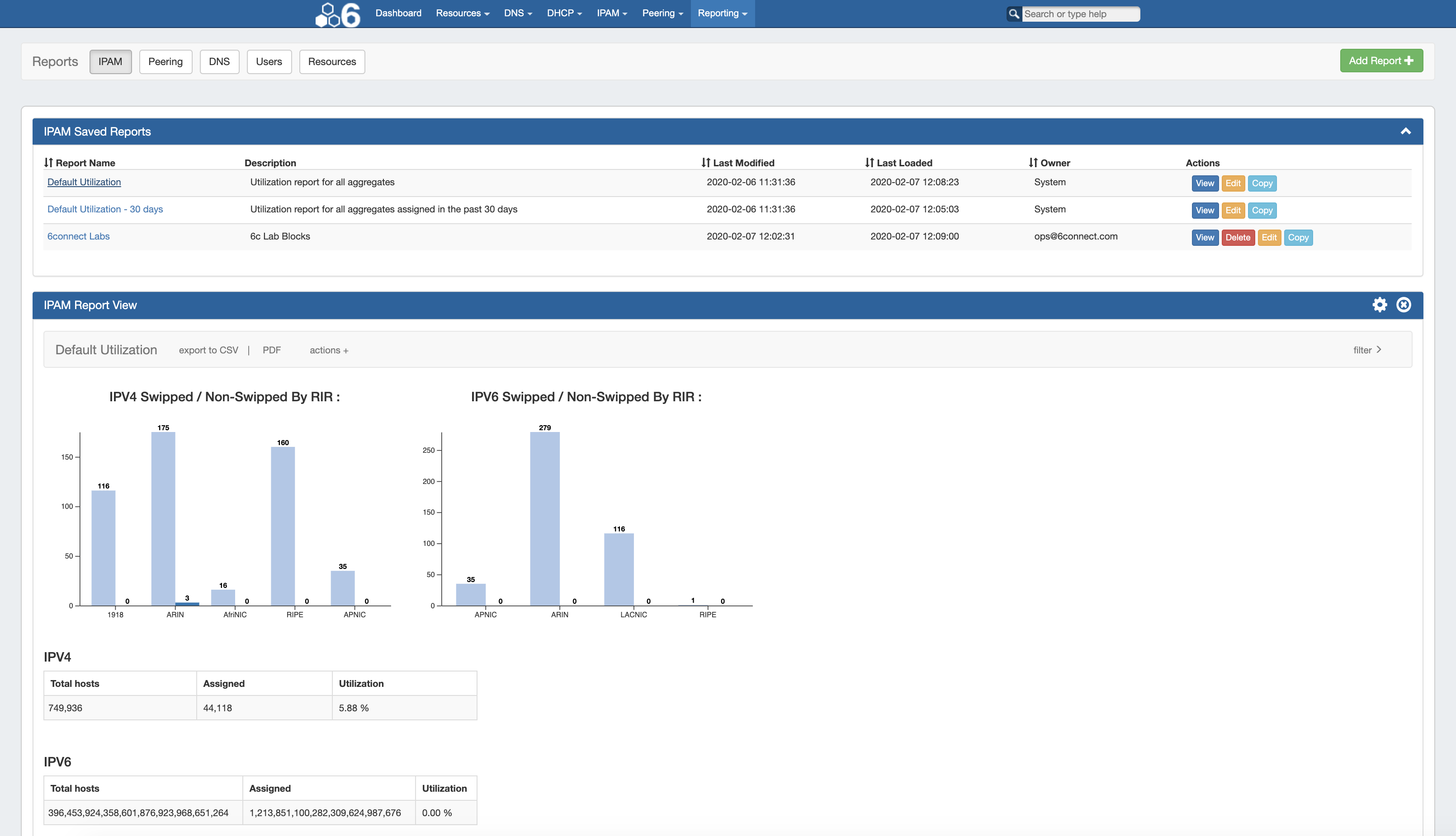 While in the Quickview panel, you may easily search for a block by typing the all or part of the CIDR into the IPv4 or IPv6 Filter boxes - useful for verifying an assignment or quickly scanning ranges.