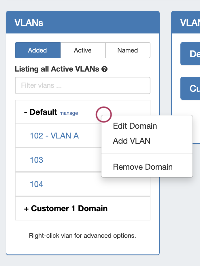 Right click to open context menus for both Domains and VLANs