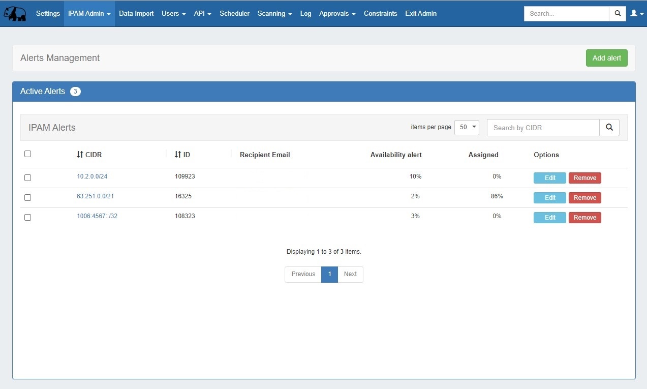 IPAM Alerts Management