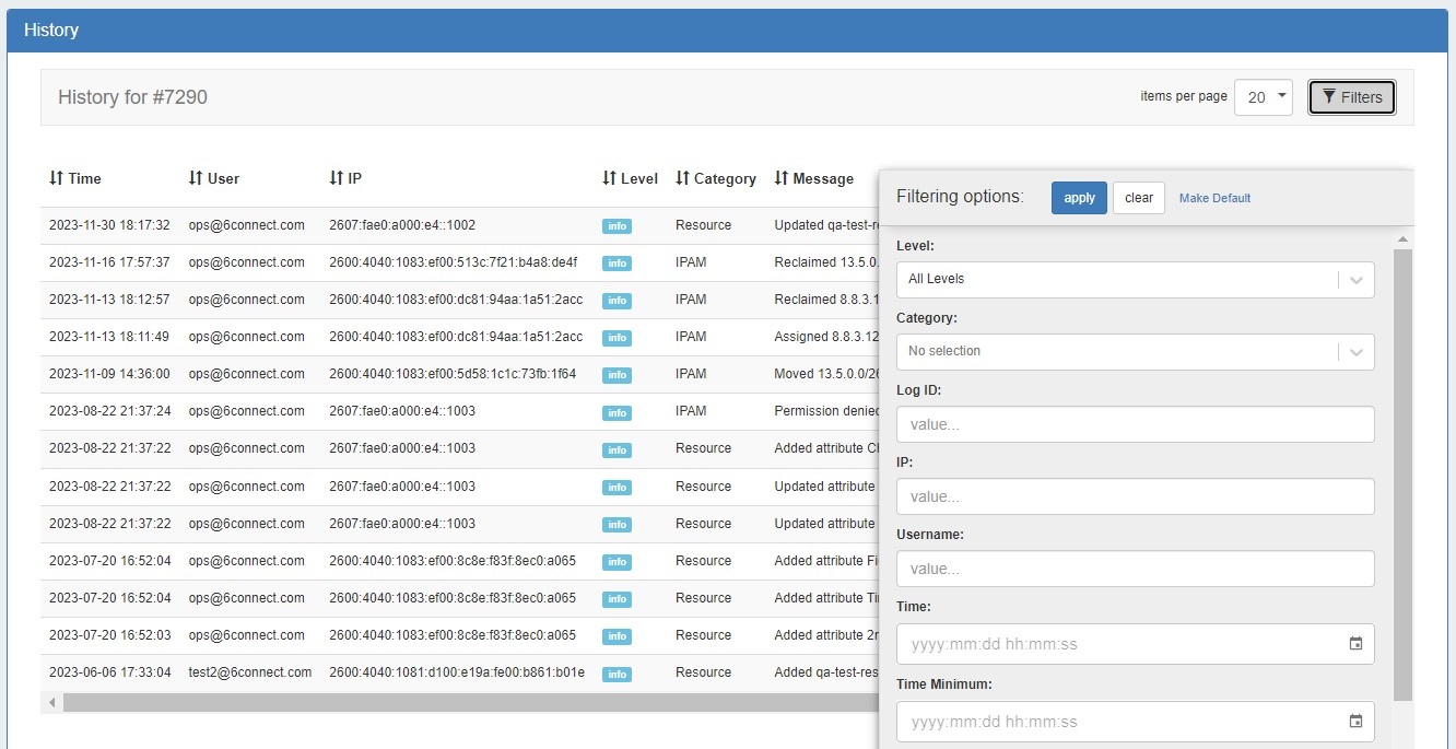 The History Gadget UI and filters were updated to match the Admin Log page UI.