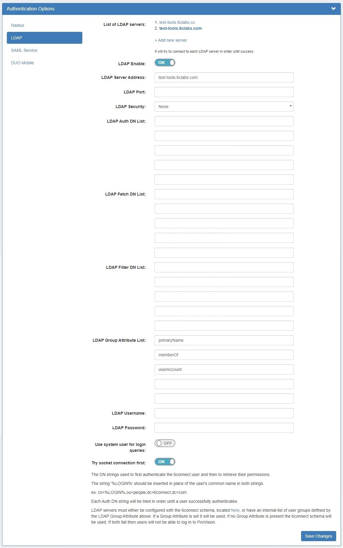 Key features are the inclusion of multiple servers, the inclusion of the Filter DN, and requirement for extensive logging.