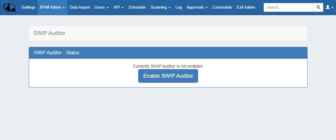 Enable the SWIP Auditor from the IPAM Admin tab of the Admin Section.
