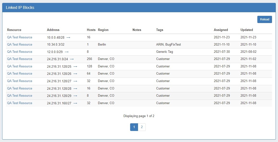 The Resource Linkage Gadget also provides information to the Linked IPs Gadget - Resources linked here will have their IP block information displayed in the Linked IPs Gadget.