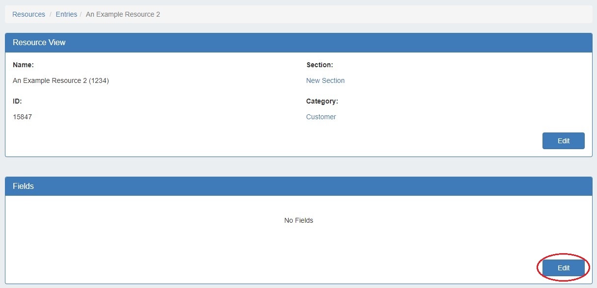 To add all or some of the enabled fields to the gadget, navigate to the resource entry page, and click the "Edit" Button at the bottom right corner of the Field Gadget.