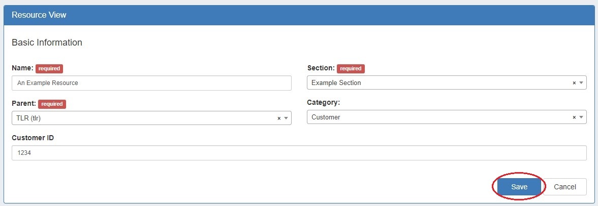 Once the Field Gadget has been added, and fields have been enabled for a section, the Field Gadget will display on the resource entry page for a resource of that section.